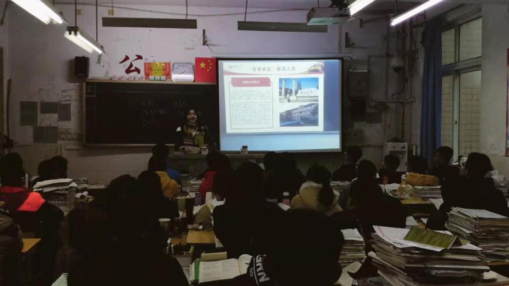 在回访母校之前,我们先联系以前的高中老师,仔细向他们阐述我们此次宣传工作的目的,并确定了宣讲的具体时间;之后,我们以培训会的PPT为基础重新制作了宣传的PPT,并从网上下载了一些关于国家资助政策的视频;最后,我们去打印店打印了几份宣传册,梳理了一下思路,认真写了一份讲解词,并模拟演示了几次。