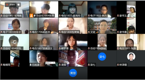 学子往年到靖州乡村支教的热闹场面。视频结束后,郑昊同学代表支教队队员承诺,尽管今年无法下乡实践,但他们仍可以在文化课上用一个网络、几台设备支撑出孩子们的学习天地;绘画课上一块白纸、几根铅笔描绘孩子内心的美好世界;科技课上科普高科技知识,吸引孩子们的目光、点燃孩子们对高新科技的向往……寓教于乐、教学相长是“三下乡”支教的特色,能够看到孩子们对新科技向往的眼神,听到孩子们的读书声、讨论声、欢笑声,感受到孩子们身上洋溢的少年活力,是老师们的心愿;郑昊同学又说到会尽己全力与孩子们续写“三下乡”的辉煌历程,给孩子们带来充实丰富的线上教学。