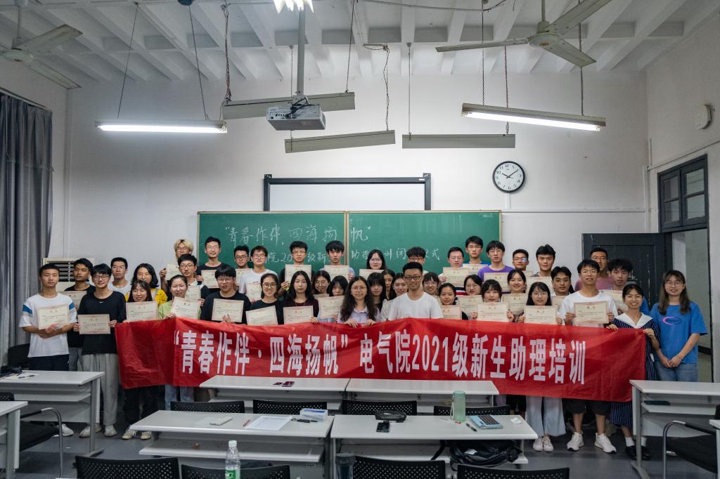 2021 级学生助理培训闭幕仪式在东楼 209 召开。本科 21 级新生辅导员金晶出席本次仪式,辅导员助理姜林昊宇主持仪式。