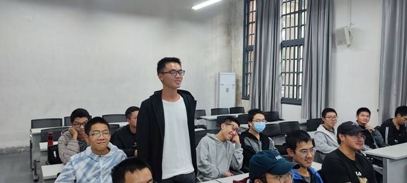 班会正式开始,主持人邵琪与主持人张俪丹首先介绍了青春的意义,同时也向同学们介绍了革命前辈们的青春故事,告诉同学们,我们现在的美好生活是革命前辈们用青春乃至生命换来的。接着,主持人带领同学们观看了《觉醒年代》的相关混剪。观看完毕,谭啸同学与龚劲轩同学谈起了自己对青春的感想。其中谭啸同学的一句话让同学们印象深刻:“世如焚炉,人似柴薪。或许我们的青春只能燃出一丝丝火光,但所有人的青春加起来,就能照亮前方的黑暗”