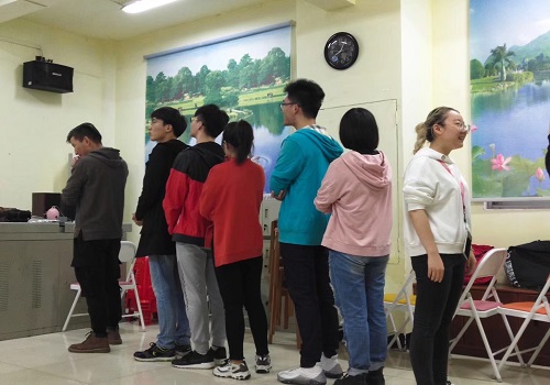 第二部分是游戏“你比我猜”:第一个同学通过肢体动作向下一个同学表演自己所看到的成语,下一个同学紧接着模仿并传递下去,直到最后一位同学,通过上一位同学的表演猜出答案。同学们在这个游戏中放开自我,尽力表演,笑料百出,大家的笑声更欢乐了,心也贴得更近了。