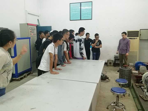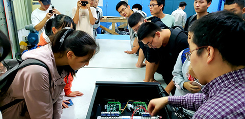 的电力驱动与伺服技术重点实验室、机械工业配电网电气节能实验室及电能变换与控制技术实验室,分别就电路和电机两个方面进行了细致讲解。在张老师和吴老师的细致讲解和耐心答疑中,同学们对电气工程专业及学科方面的未来规划有了进一步的了解和明确。
