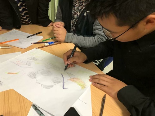 相知阶段每个小组所有组员在10分钟之内合作完成一幅内容不限的画。同学们各自发挥想象力,与组员合力绘制出一幅幅精美的画作。在与全班同学们分享时,每个组的代表也都解释了画作的含义和他们想在其中表达的想法。有的组把小组内每个同学家乡的特色完美的融合到了一次,让大家捧腹大笑;有的组用精美的画工描绘出国产无码