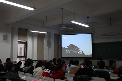 观看视频结束后,有同学主动上台讲讲他们亲身感受到的改革开放所带来的变化。有人说道“从自行车代步的时光到如今乘公交地铁,坐进网约车或骑着共享单车,从绿皮火车到如今的磁浮列车,高铁飞机,从军大衣喇叭裤到现在身上新潮的风衣牛仔。从粮票,补票到如今拿起手机扫扫二维码或用APP下单。这便是我们共同经历的时代变迁,时光荏苒,光阴似箭。我们清晰地知道,所有的改变并非凭空出现”。