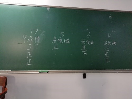 班会的第二阶段,由四名候选人依次上台讲述自己的竞选理由,候选人中有说到,入党是自己一直以来的一个目标,一直想要成为一名党员,严格要求自己。也有人说到,自己曾经错失过一次成为入党发展对象的机会,但是不想要再次错过这一次的机会。在听了四位候选人的真诚讲述后,由班级其他未参加选举的22名同学投票,把心中认为最适合的两位候选人名字写在一张纸上,最后收集好后,于当场唱票。