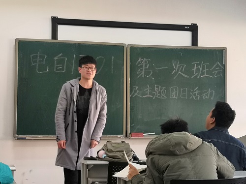综合楼的一角,电气工程及其自动化1701班全体成员于210教室开展了新学期的第一次班会暨主题团日活动。