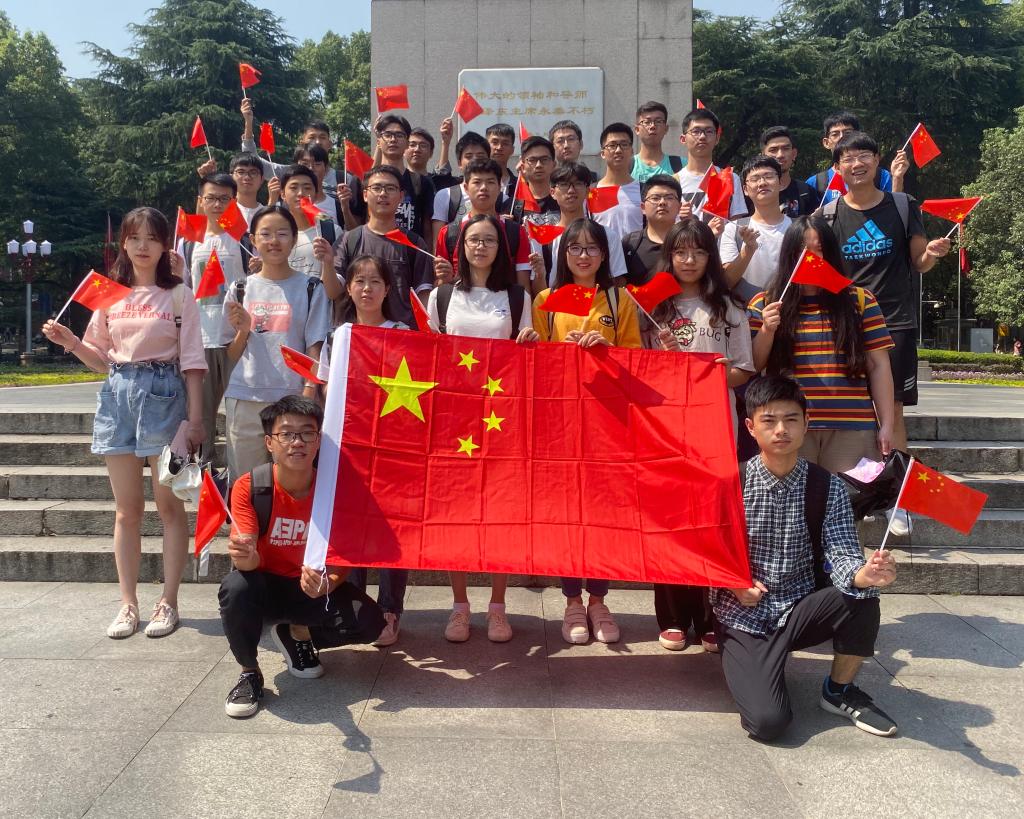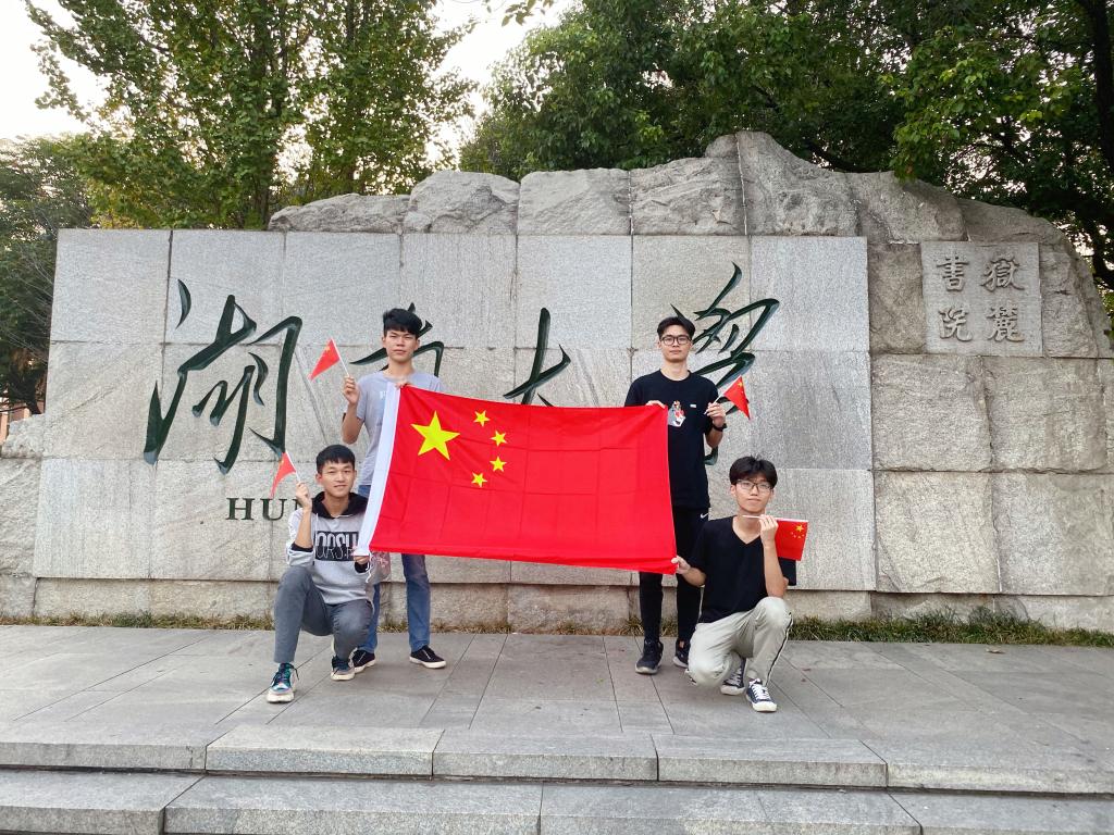 院楼等处手举国旗合影留念,在自己的青年时代留下与伟大祖国的美好瞬间,并以最饱满的热情和青春的面貌向祖国告白:“阿中阿中勇敢飞,中华儿女永相随。”祝愿我们的祖国更加繁荣昌盛,祝愿千千万万中华儿女更加幸福安康。