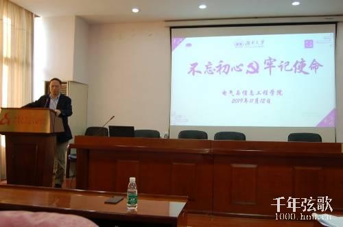 党委在电气院院楼224开展“不忘初心,牢记使命”主题教育党课。此次党课由院党委副书记陈军主持,院党委书记黄守道作专题汇报,电气院全体教师参与学习。