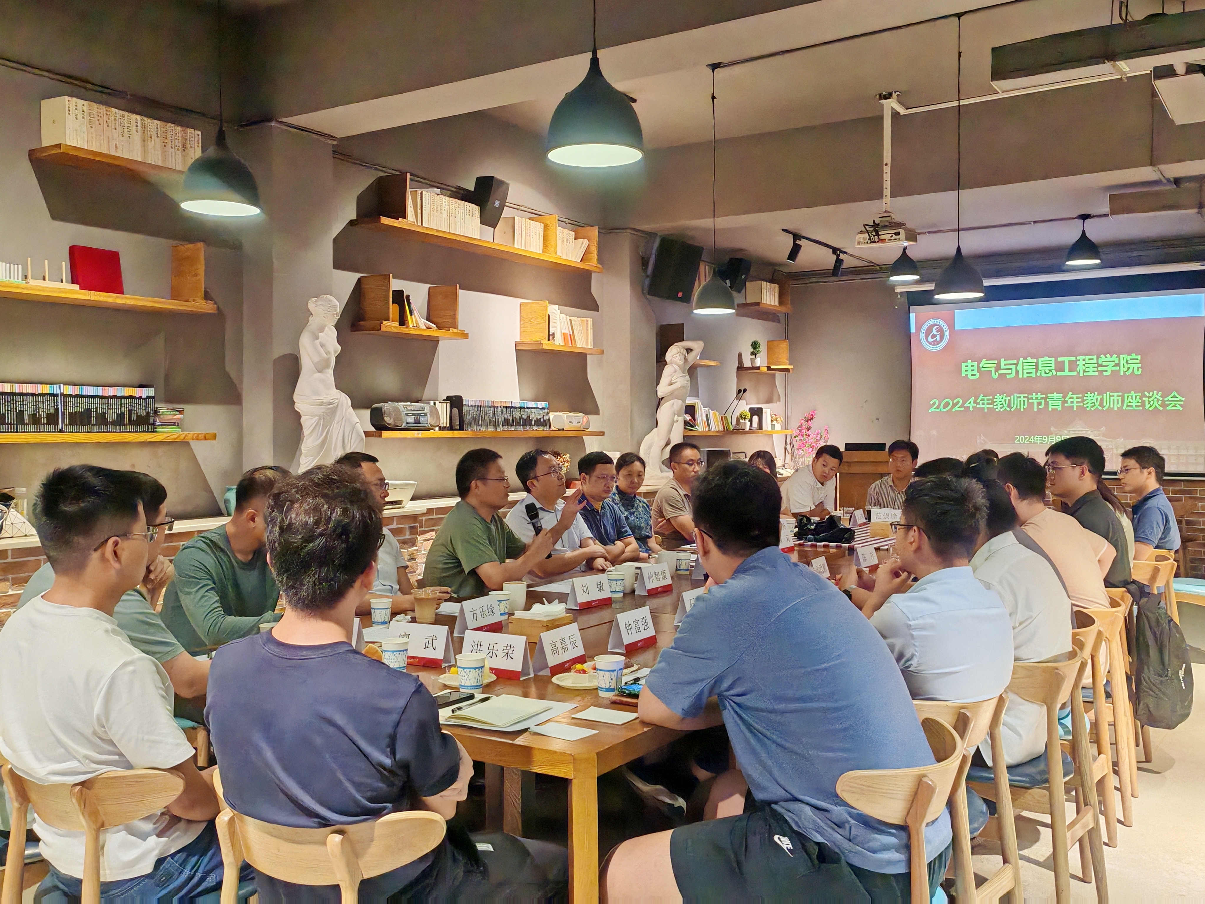 9月9日中午,学院2024年教师节青年教师午餐座谈会在湖大外语学院咖啡吧举办。党委书记张小刚、学院院长帅智康、副院长李勇、副院长刘敏、副院长周莉、院长助理方乐缘以及2023、2024年新进教师齐聚一堂,畅聊青年教师成长,共叙学院事业发展,庆祝第40个教师节。学院党委书记张小刚主持会议。