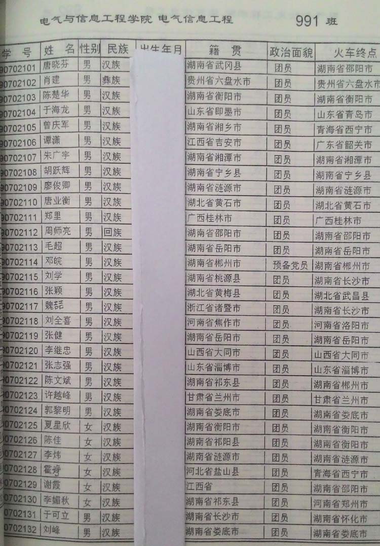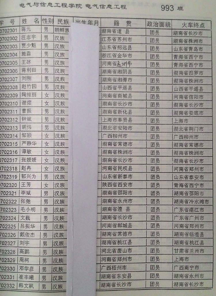本科生校友名单 (1921—1925 湖南公立 工业专门学校)