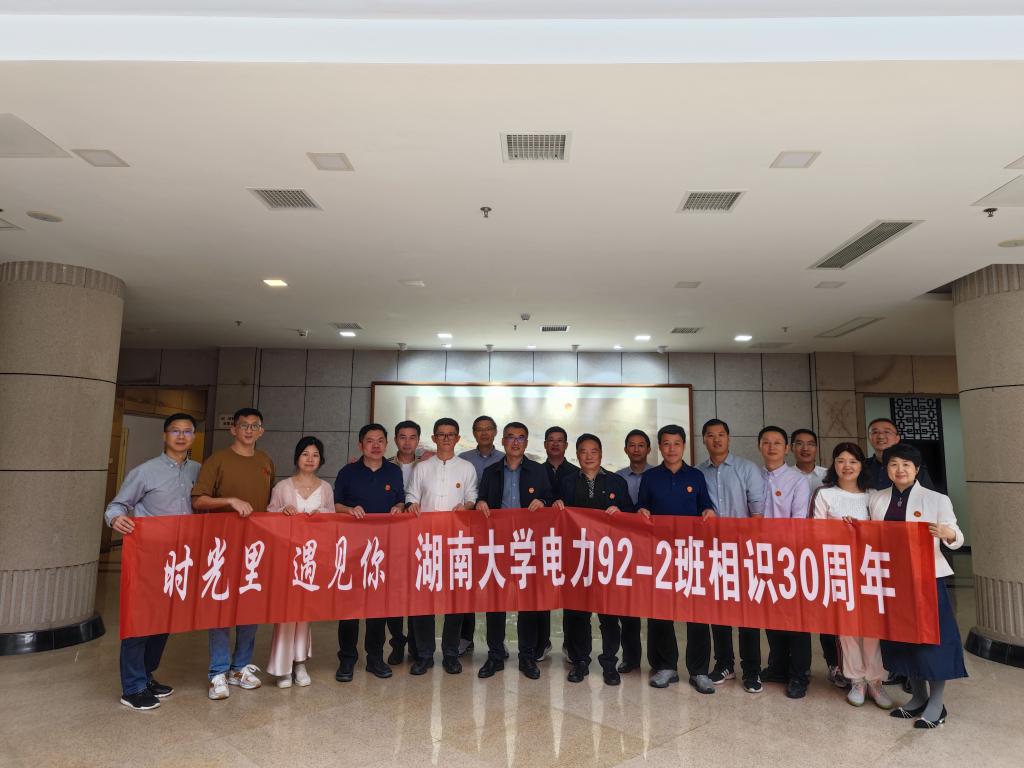 电力92-2班相识30周年座谈会”。会议邀请了电气学院姚建刚教授、校党委副书记孙炜和校资产经营公司总经理张浩出席。会上,孙炜书记代表学校和学院对同班同学们30年返校重聚表示热烈欢迎,并从学科发展、师资队伍、人才培养、社会服务、愿景规划等方面向各位校友全面介绍了学校和学院的发展情况。校友们也依次介绍了自己离校以来的工作、生活情况以及对半百人生的体会感悟,畅谈了往昔老师的谆谆教诲和亲切关怀,重温了过去校园生活中的点点滴滴。校友们纷纷表示,感恩母校的培养,尤其对于电气学院近年来取得的快速发展和突出成果,感到由衷的喜悦和自豪。会后,老师和校友们合影留念。