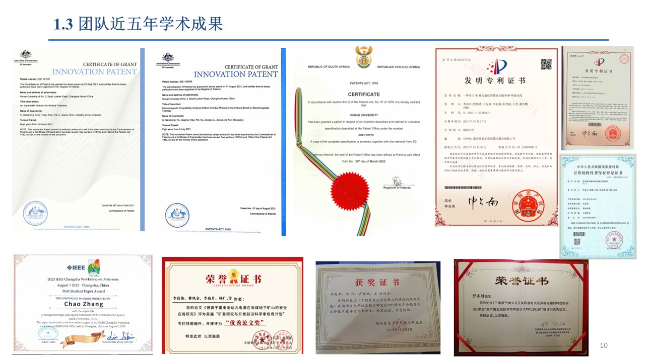 IEEE Senior Member, 中国电子学会天线分会/中国电工技术学会电磁兼容专委会委员/中国兵工学会电磁专委会委员,中国通信/造船/仪器仪表学会高级会员,中国物理/汽车/宇航/电机学会会员,ACES/ISBE/IEICE Member,博士后(南航、无锡华测),国家公派访问学者(英国利物浦大学,University of Liverpool,2016-2017;白俄罗斯国立信息与无线电大学,2010-2011),教育部电子信息专业组专家、空军装备预研和采购评审专家,国家科技奖励评审/装备发展部专业组/科技委领域主题/工信部/科技部专家库成员,湖南/山东/江苏/浙江/江西/广西/深圳等省/区/市科技咨询评审专家,中国教育技术协会教育仿真分会/全国高校电磁场教学与教材研究会/湖南省电子学会常务理事,天隼实验室/电磁信息控制与效应全国重点实验室/电磁环境效应一带一路国际联合实验室客座教授,山西省电磁防护重点实验室/中国兵器工业集团微波电磁重点实验室学术委员会委员,新疆自治区天池英才特聘专家,湖南省科技创新领军人才。